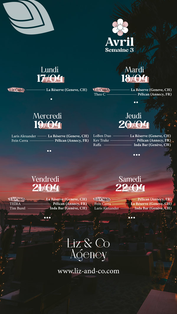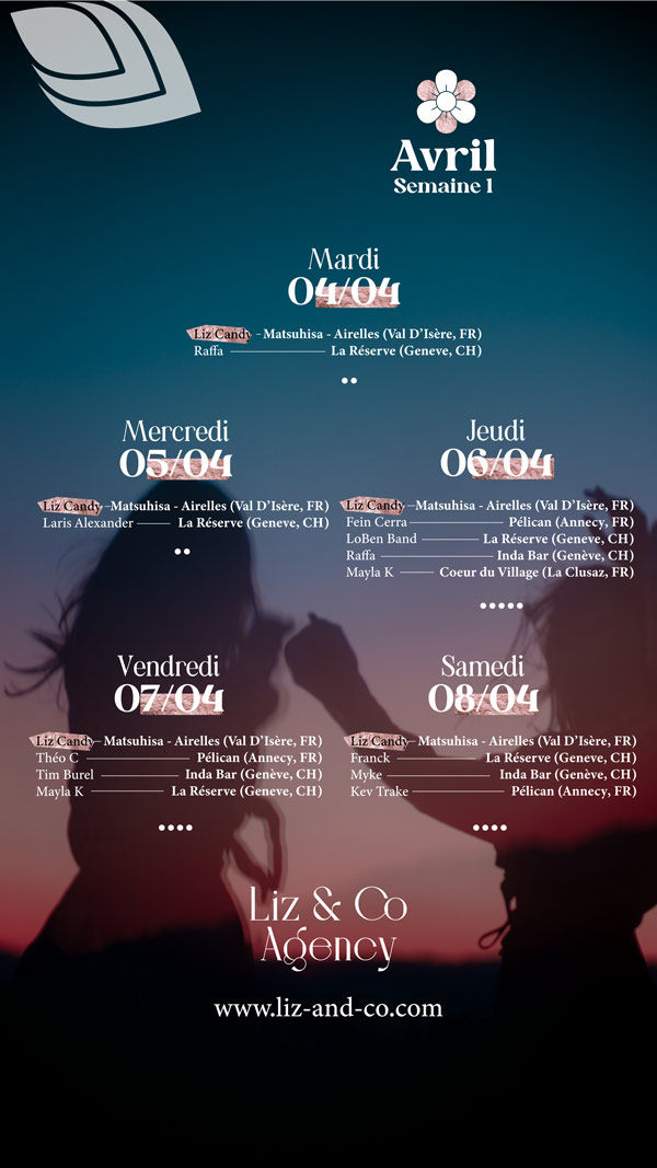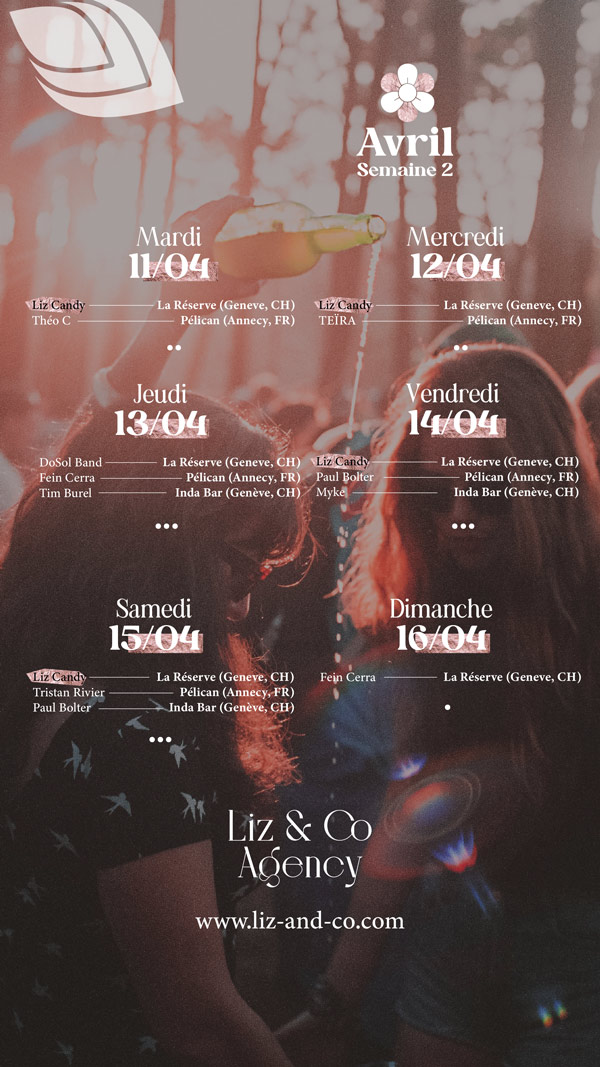 Calendrier Liz&Co L’agenda quotidien est désormais disponible sur Instagram Voir l'agenda Printemps 2023 Hiver 2022 / 2023 Automne 2022 Été 2022 Printemps 2022